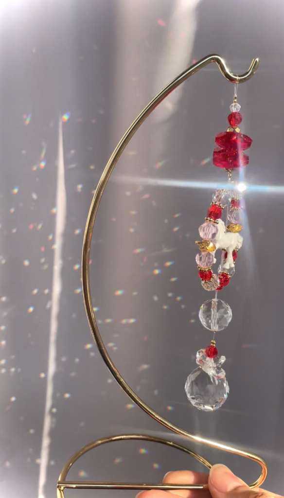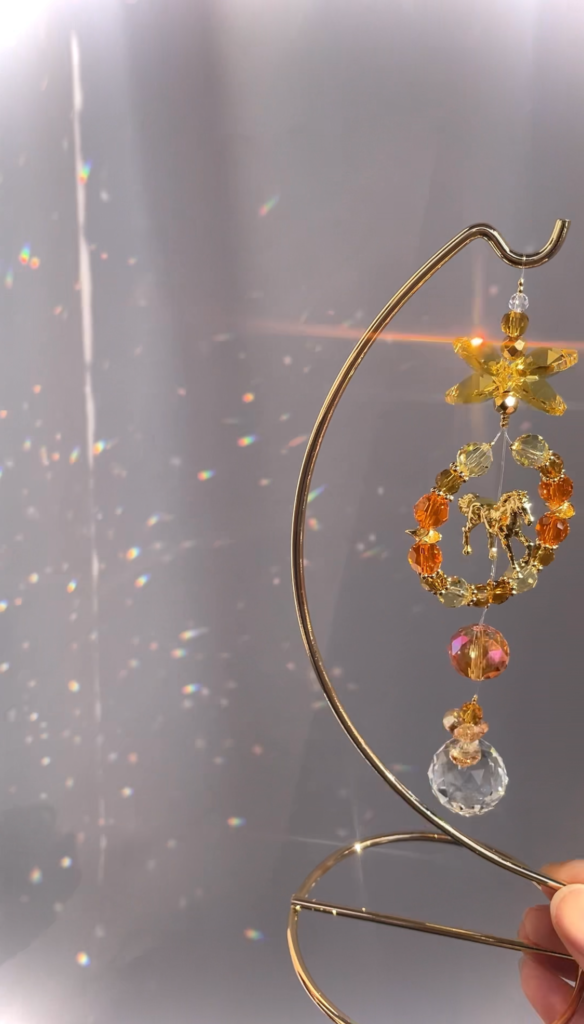 太陽光を反射させて、虹色の光を生み出すインテリアアイテムです🌈